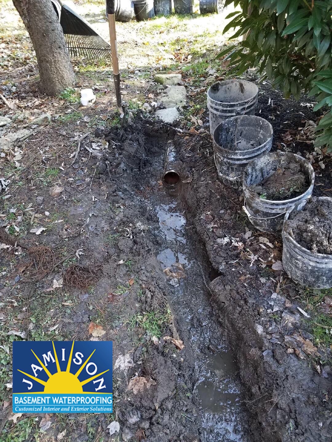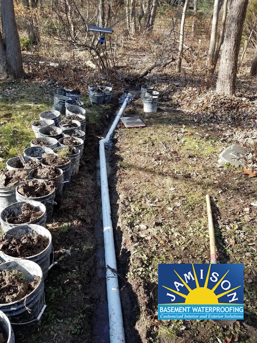 Veteran crew Foreman Dwight Custus went out to meet with the homeowners . He recommend extending the Sump pump discharge line 30ft to the rear of the yard , this way it’s far away from the part of the yard that the homeowners wanted to protect . Now the homeowner doesn’t have to worry about the Sump pump water flooding their back yard .