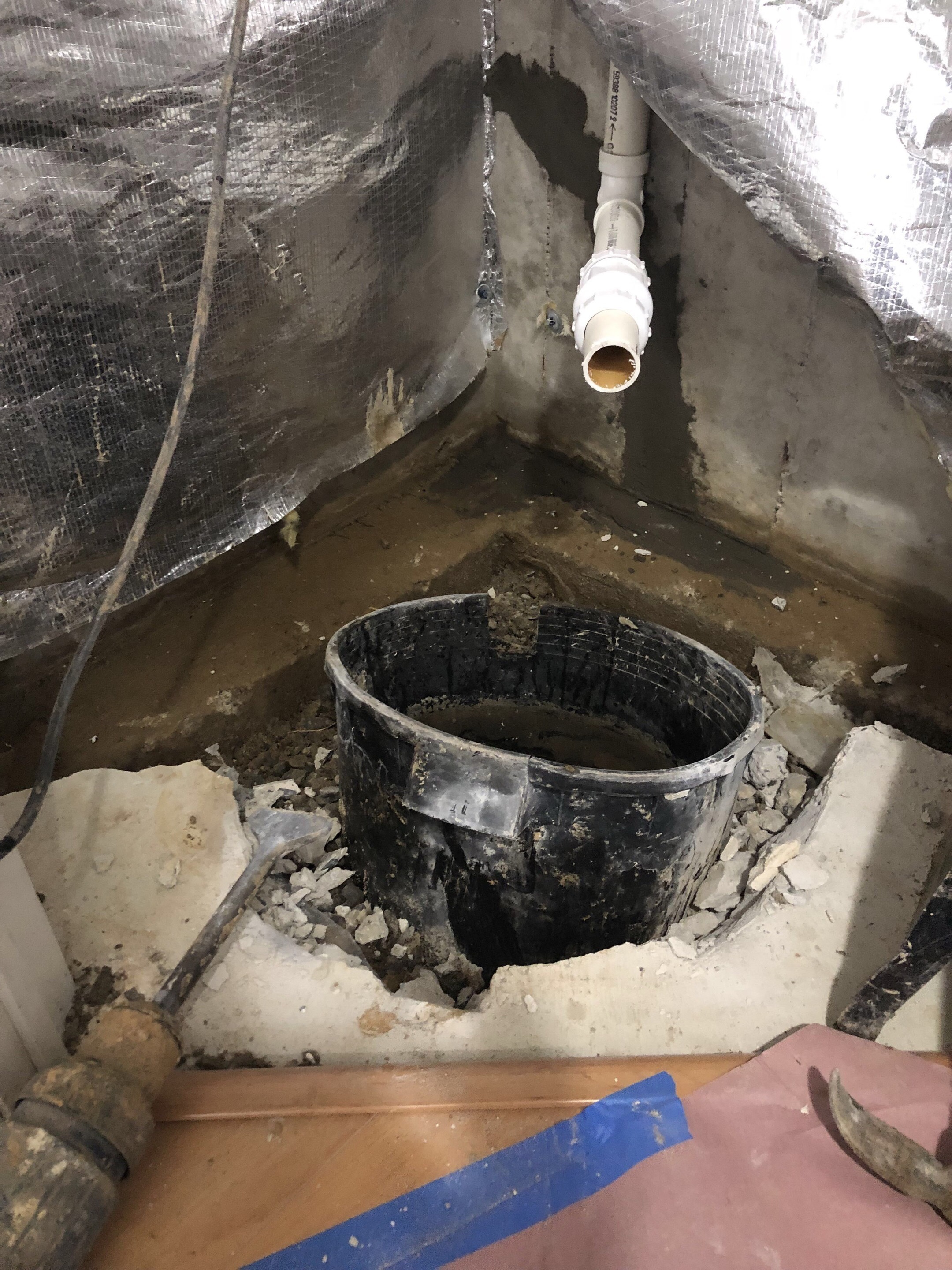 Existing basin no holes for ground water to enter