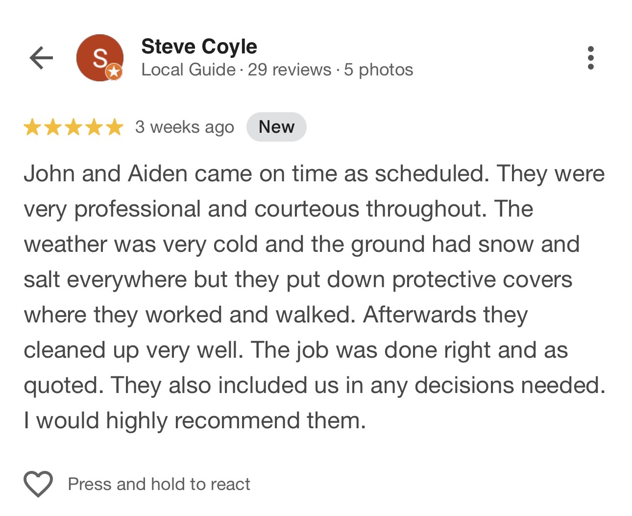 Job completed for Steve C