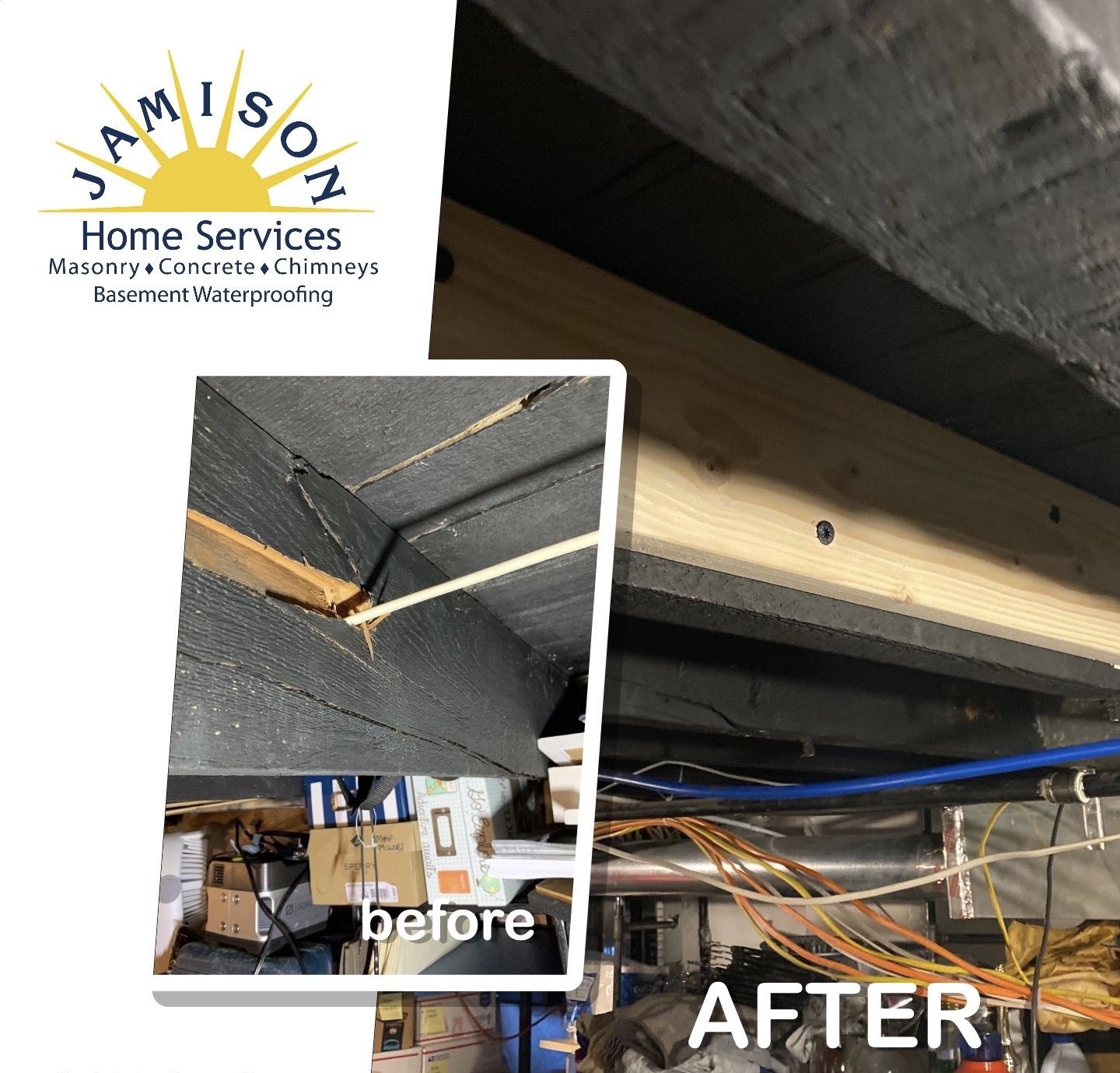 Project Manager Steve C went out to take a look at the concerns the homeowners were having with the sagging floors and cracked floor joist . Steve told the homeowners you can usually remedy sagging problems yourself by “sistering” new joists alongside the existing ones (this also works for stiffening bouncy floors) Steve also recommendation was to add 3 new 4x4 support columns placed on 16x16 solid concrete footers ..